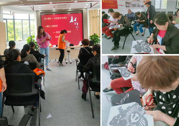 胡老师在打着居民进行作品简单的展呈后,居民拿着自己亲手剪刻出来的作品,抒发着对党的热情之情。居民们纷纷表示,通过类似的传统民间艺术体验活动,表达自己对中国共产党的拥护和热爱非常有意义。(江苏城乡建设职业学院 杨铮)