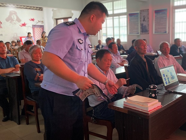 为增强居民防范诈骗犯罪常识,减少诈骗犯罪案件的发生,提升广大群众防范电信诈骗犯罪的意识和能力,维护村民的切身利益。为从源头上减少电信诈骗犯罪的发生,推动打击电信诈骗防控工作深入开展,确保社会治安大局和谐稳定。2021年5月16日,直溪镇社区教育中心联合建昌派出所走进直溪镇井庄村开展防电信诈骗宣传活动。