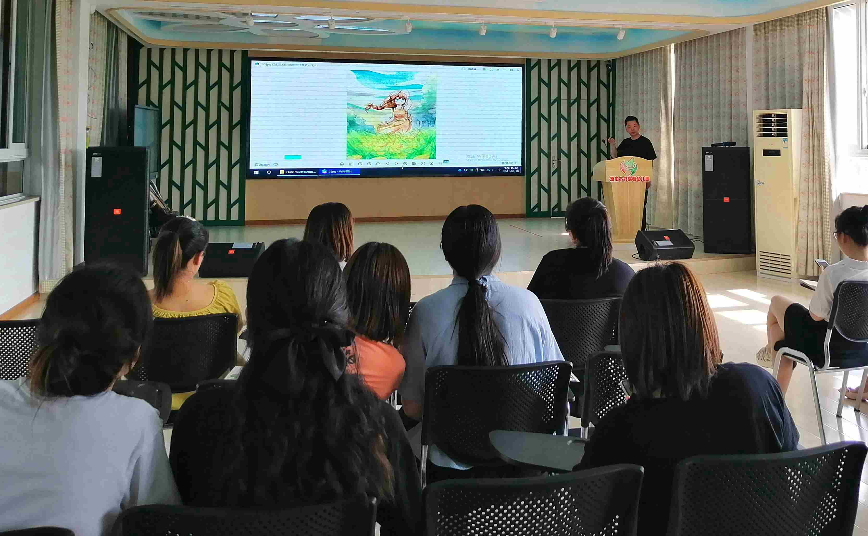 常州市溧阳市书院巷幼儿园老师们讲座听得专注认真,能积极与潘建忠老师互动,探讨主题性绘画的审题、表现及儿童画的评价等方面的疑问。讲座活动取得了很好的效果!