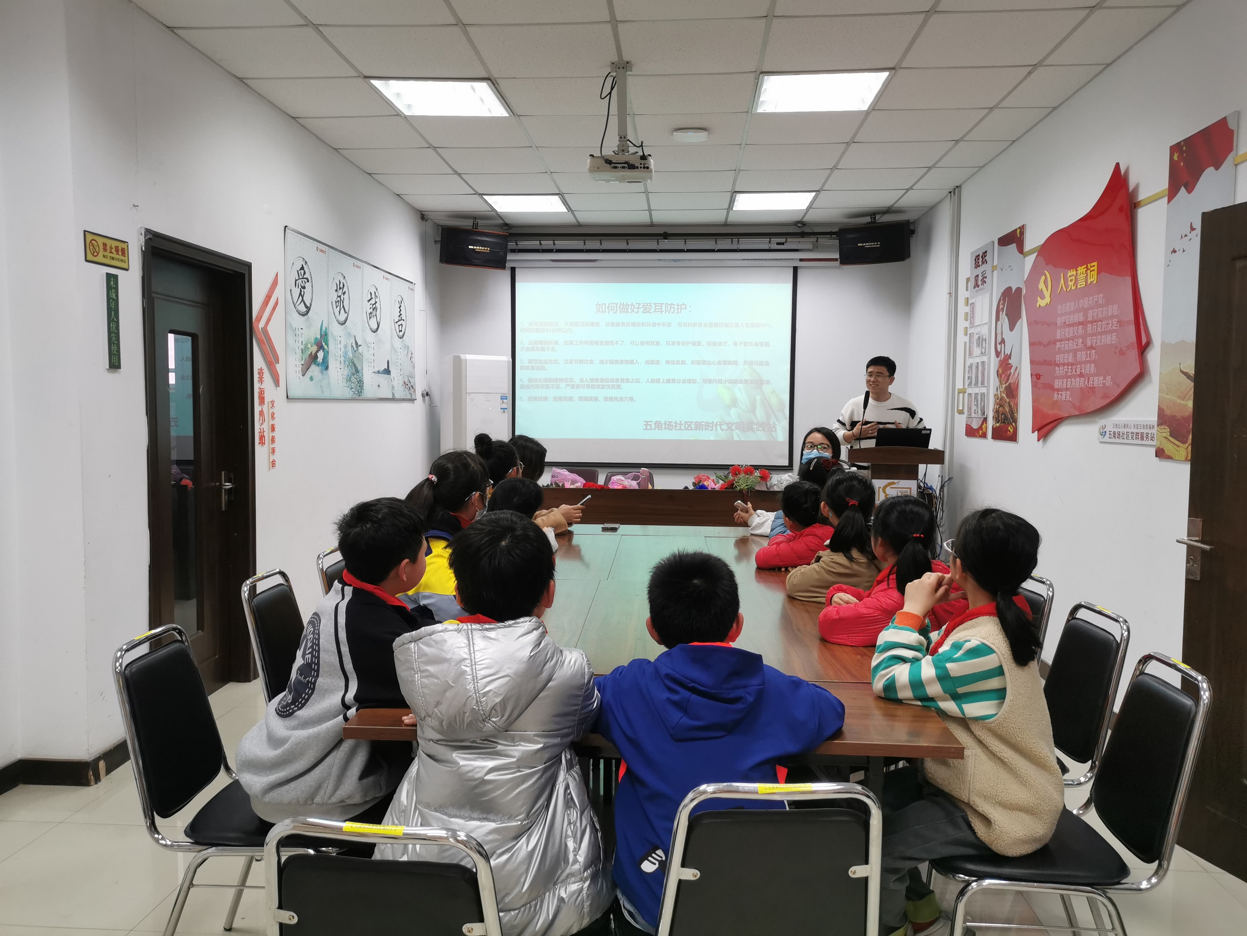 为更好的宣传保护耳朵的知识,让孩子们享有健康的听力。2022年3月3日下午3点,五角场社区在社区会议室开展以“关爱听力健康,聆听精彩未来”为主题的爱耳日宣传活动。活动现场,社区志愿者通过图文并茂的方法,生动地为孩子们讲解了耳朵的结构及各部位的作用,耐心细致地教授孩子们各种保护耳朵的方法,如遇到耳朵里有水,不能用尖的东西抠耳朵,只能轻轻地拍拍进水的耳朵,并提醒孩子们在日常生活中要注意保护耳朵,避免意外伤害耳朵的事故发生。