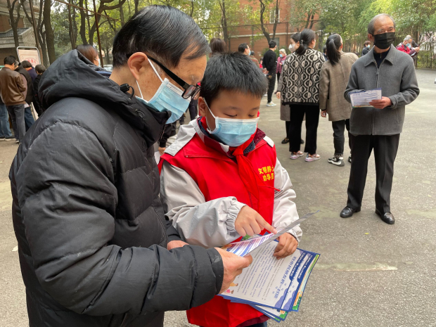 活动现场,博爱小学学生自制宣传卡片,向居民发放宣传资料,邀请居民写文明寄语,通过一系列活动引导居民依法养犬、规范养犬、文明养犬,提醒居民定期为爱犬注射相关疫苗,外出遛狗须栓绳及时清理粪便并妥善处理等。随后,博爱小学学生志愿者,参与小区美化环境活动,用实际行动践行文明志愿理念。