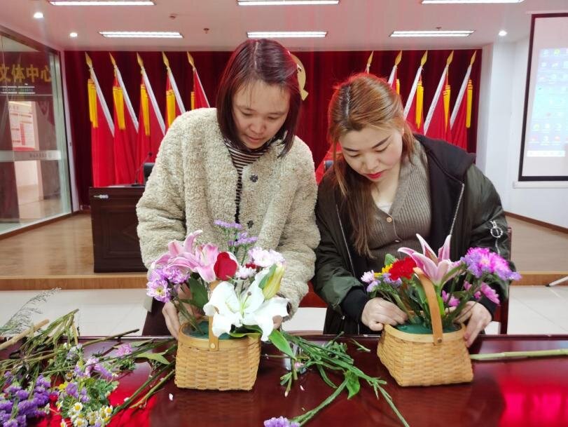 直溪镇直里社区居民学校组织女员工开展艺术插花活动