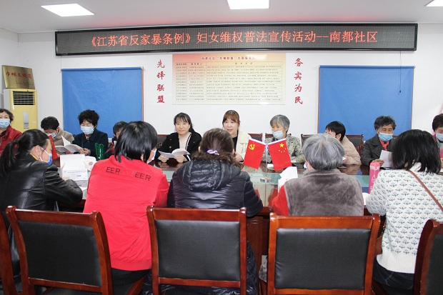 为了提高社区妇女法律意识和自我保护意识,倡导全社会共同反对家庭暴力,进一步促进家庭和谐、社会稳定,3月7日下午南都社区总网格组织社区居民开展《江苏省反家庭暴力条例》妇女维权普法宣传活动。