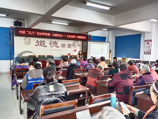 为了迎接“三八”妇女节的到来,关爱社区妇女,增强妇女的维权意识,中凉社区特邀请了常州开发大学陈莺副教授,来给辖区妇女们开展以案说法——《民法典》与婚姻家庭主题讲座。