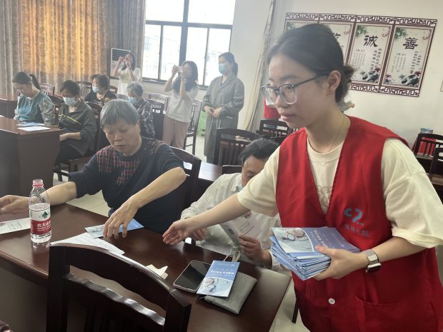 活动现场,来自七院的秦立红主任医师为居民普及肿瘤知识,讲解有关肿瘤饮食方面的注意事项,贴心提醒大家主动参加防癌健康体检,做到早预防、早发现、早诊断、早治疗等。医护志愿者们现场演示“健康拍拍手”,倡导居民每天动一动、拍一拍,做自己健康的第一责任人。活动过程中秦主任还为有疑问的病人进行现场解答,切实解决了居民的实际困扰。此次活动共发放宣传手册50余份,惠及居民80余人。