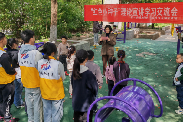 通过开展“红色小种子”理论宣讲学习交流会,让爱党、爱国、爱生活的红色种子在青少年的心中生根发芽,也让更多居民参与到红色教育中,自觉践行社会主义核心价值观。(邹傅社区居民学校 李甜甜)