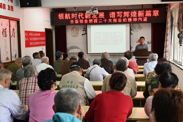 随后,来自常州开放大学的讲师刘敬行围绕党的二十大精神,结合自身的学习心得,作了主题为“领航时代新发展 谱写辉煌新篇章--全面领会把握二十大报告的精神内涵”的宣讲,带领大家深入学习领会党的二十大报告精神内涵。