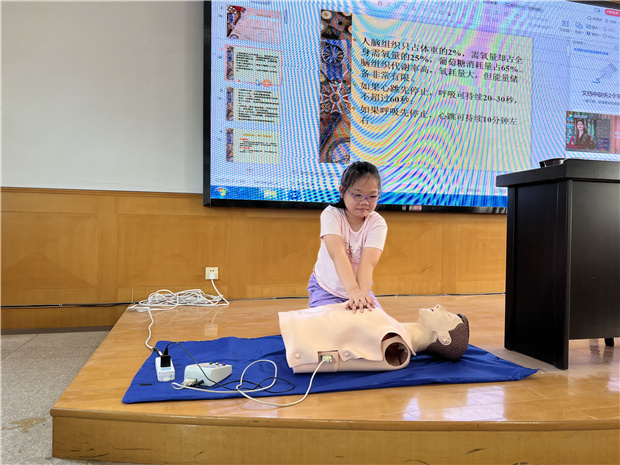 学习急救知识,掌握应急救护技能关系到每个人的生命安全。鸣凰卫生院张医生现场授课,通过案例讲解心肺复苏等的步骤、原理,让社区青少年儿童、居民清晰了解急救的基本要领。随后张医生进行现场演示,为大家展示胸外按压、人工呼吸等技术手法,青少年儿童、居民们学习后纷纷踊跃上前演练,张医生在旁指导,对不规范动作耐心纠正,受到了居民的一致好评。