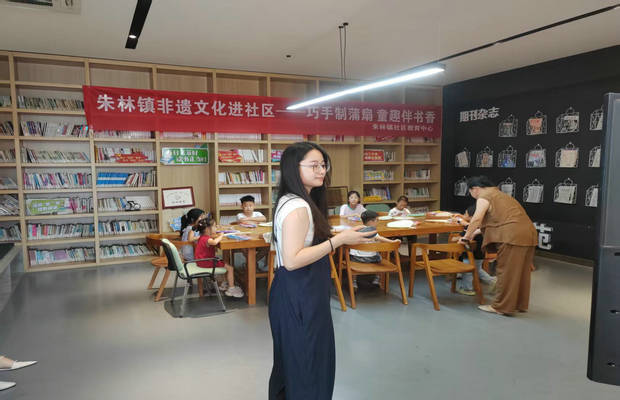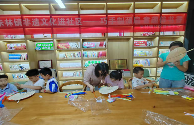 为丰富了小朋友们的暑期生活,,增强其动手能力及创作力。7月23日下午,朱林镇社区教育中心组织辖区内10余名小朋友开展了一场主题为“巧手制蒲扇 童趣伴书香”的贴画蒲扇制作活动。