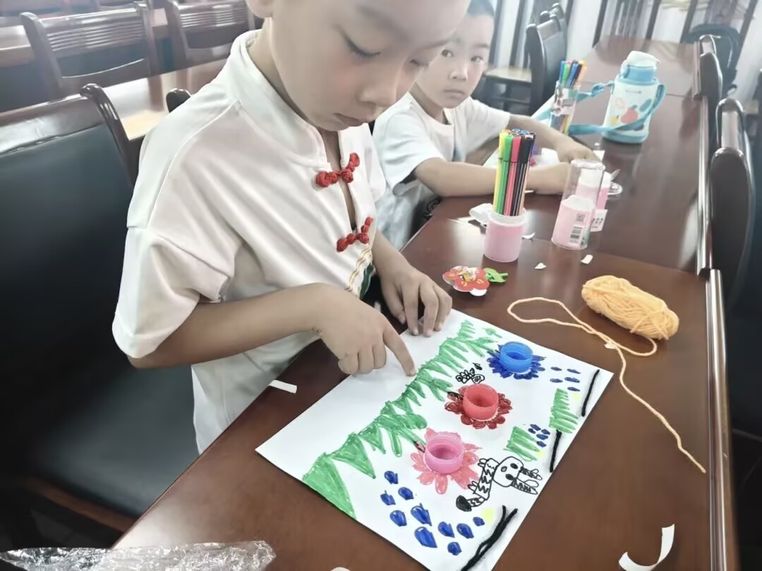 为了让小朋友更加深刻地认识湿地植物,志愿者带领孩子们开展了毛线瓶盖画活动。清洗过的废弃瓶盖、毛线团等材料摆上桌,小朋友们携手合作,发挥巧思,将瓶盖作花朵、毛线当藤蔓,创作出一幅幅色彩斑斓的绿色创意画。在动手过程中,大家以艺术形式重温湿地植物之美,也践行了环保理念,让“变废为宝”与“爱护湿地植物”双向融合。