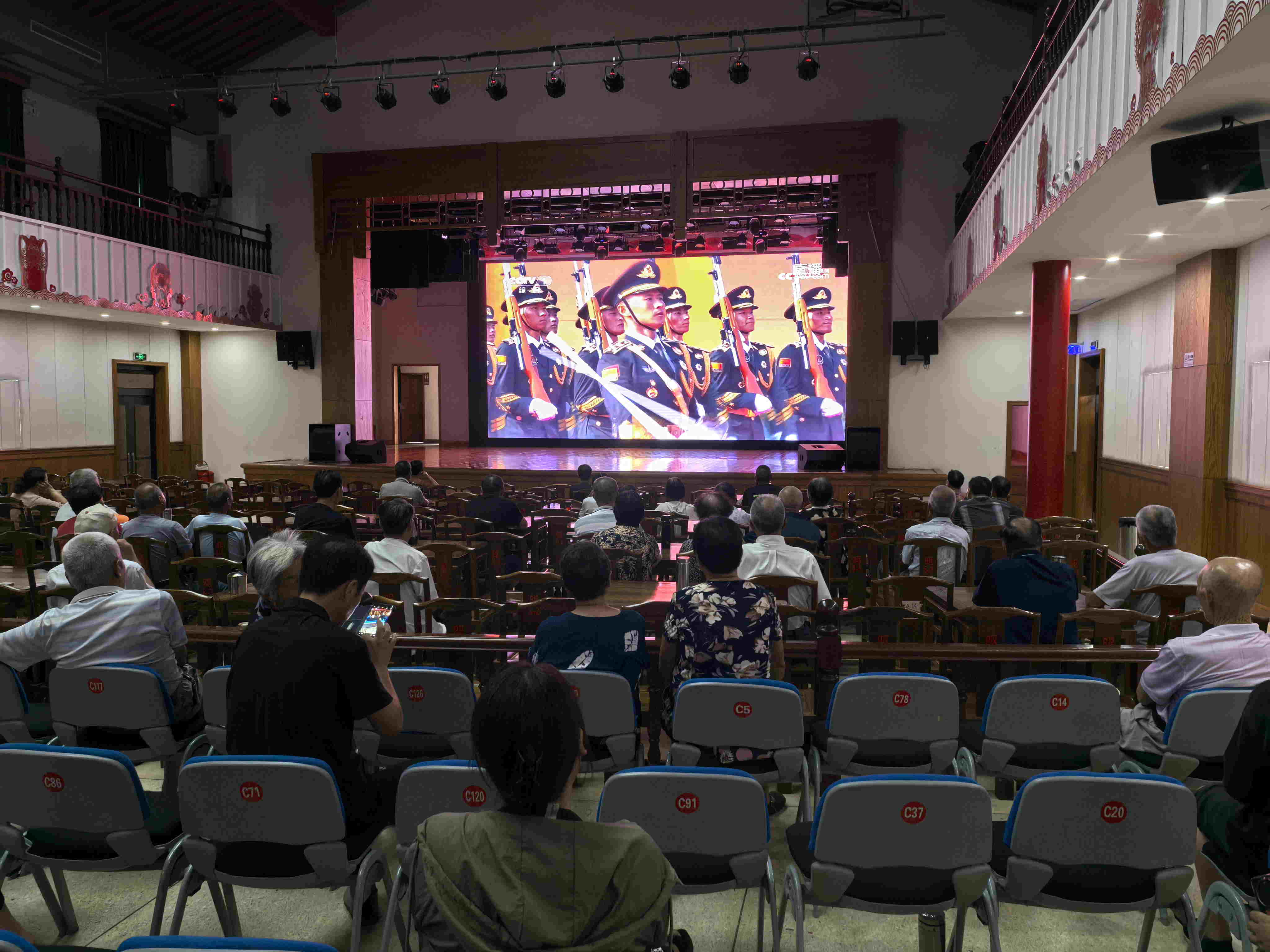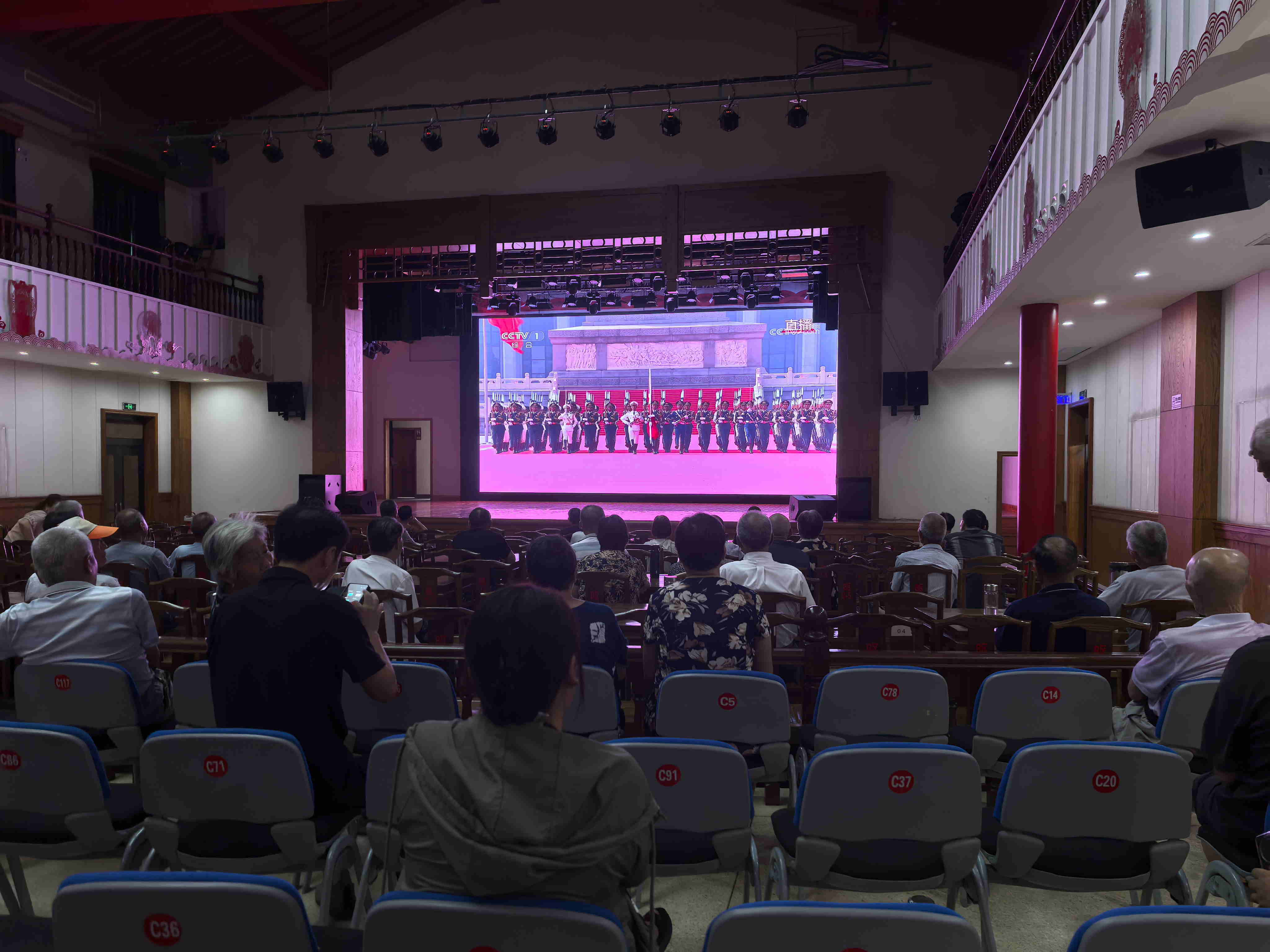 2025年9月3日上午,尧塘街道社区教育中心组织来自水北社区周边一百多名基层党员干部、退伍军人和社区居民,齐聚于坤凤戏院,共同观看“纪念中国人民抗日战争暨世界反法西斯战争胜利80周年”阅兵式直播。这场庄严的仪式不仅是对历史的深情回望,更成为凝聚社区爱国热情的生动课堂。