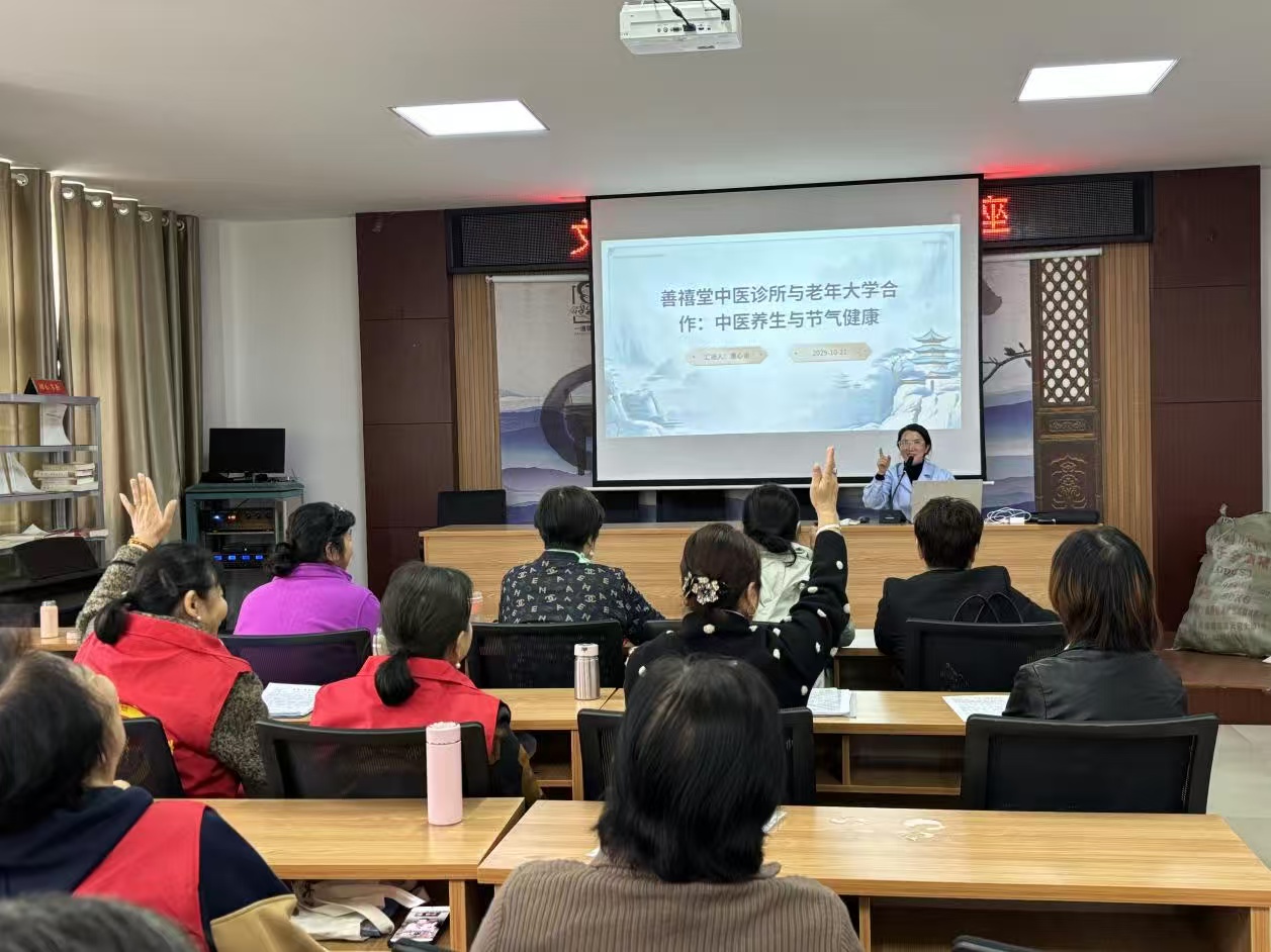 为深化全民终身教育学习周“健康养老”服务内涵,近日金城镇社教中心联合善禧堂中医诊所、老年大学,举办“中医养生与节气健康”专题讲座,近40名老年学员参与活动,沉浸式体验传统中医的养生智慧。