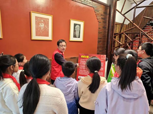 帅健强是一位餐饮经营者,更是一位坚持公益二十余载的爱心榜样。活动中,帅健强向孩子们娓娓道来自己的公益之路,从最初只是带动家人参与无偿献血,到后来渐渐发动身边朋友、邻居,再到走进社区、学校、企业,凝聚更多人的力量。他还分享了一次寒冬中见义勇为的经历——冒着严寒跳入冰冷河水,协助打捞落水车辆。他说:“那一刻没想太多,只觉得应该去做。”朴实的话语中,透出他内心深处的勇敢与担当。当被问及是什么力量支撑他一路坚持时,帅健强动情地说:“是雷锋精神,激励我从小事做起、从身边做起;也是华罗庚先生求真务实、报效祖国的精神,鼓舞我把个人的力量融入社会的大爱之中。”活动现场,孩子们认真聆听,积极提问,眼神中充满感动与敬佩。采访结束后,全体人员宣誓道:“今天我们遇见了光,明天我们要去追逐光,未来我们更要成为像帅叔叔那样能够温暖别人的光。”