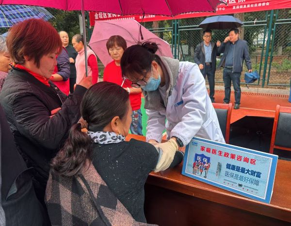 健康服务专区同样人气高涨,社区卫生服务中心的医护人员有条不紊地为居民提供免费血压、血糖检测服务,并针对老年群体常见的高血压、糖尿病等慢性病,逐一给出用药指导与饮食建议。“您血压偏高,平时要控制盐的摄入,记得按时服药,有医保买药还能报销,能减轻不少负担。”医生周莉一边为居民李阿姨记录健康数据,一边叮嘱医保报销注意事项。李阿姨手持血压单与宣传册,满脸笑容地说:“不仅了解了自身健康状况,还摸清了买药报销的门道,这趟来得太值了!”