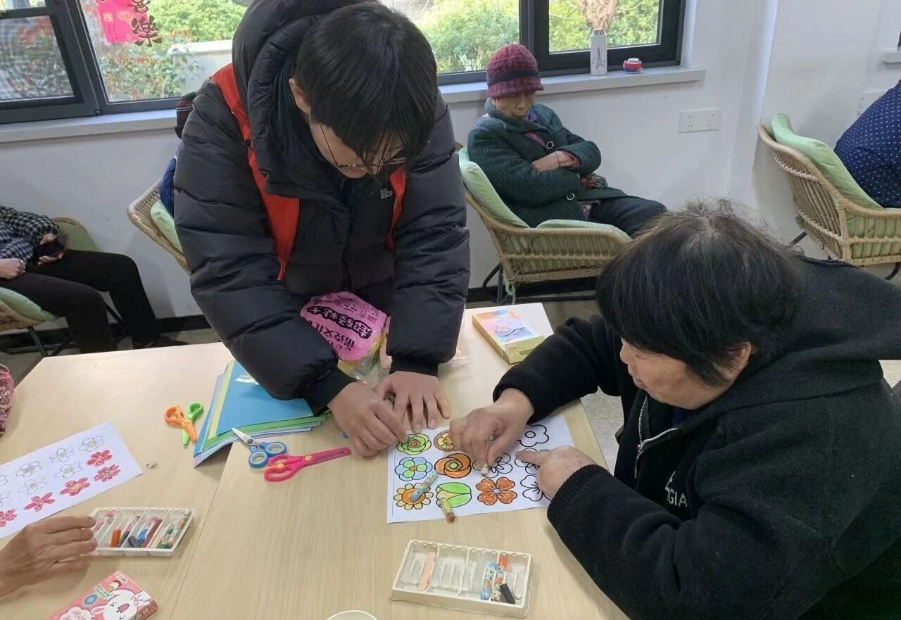 奶奶们学得格外认真,眼神专注地跟着志愿者的步骤操作,指尖虽有些许笨拙,却满是用心。有的奶奶手法熟练,很快就做出了雏形,还不忘和身边的姐妹分享技巧;有的奶奶初次尝试,在志愿者的反复指导下,也慢慢找到了窍门,一朵朵娇艳的手工花在指尖渐渐成型。制作的过程中,奶奶们聊着生活趣事、说着节日喜悦,志愿者们也融入其中,听奶奶们讲述过去的故事,老少相伴的画面,温馨又美好。
