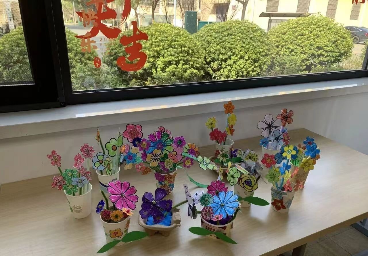 经过一番巧手创作,一朵朵形态各异的手工花束新鲜 “出炉”,红的热烈、粉的温柔、黄的明媚,每一束都承载着制作者的心意与祝福。奶奶们手捧着自己的作品,脸上洋溢着满满的成就感,互相展示着彼此的花束,分享着制作的快乐。小朋友们也举着亲手做的花束,蹦蹦跳跳地向志愿者们展示,眼里满是自豪,迫不及待地想要把这份心意送给家里的女性长辈。