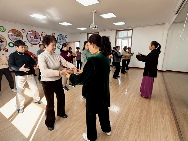 广场舞课堂上,老师耐心分解动作,从步伐、手势到身形逐一指导纠正,学员们精神饱满、认真跟随,在欢快旋律中舒展身姿,强身健体、收获快乐;八段锦课堂上,老师结合老年人身体特点,讲解养生原理与动作要领,引导学员凝神练习,动作舒展柔和,既能疏通经络、增强体质,又能缓解疲劳,深受喜爱。