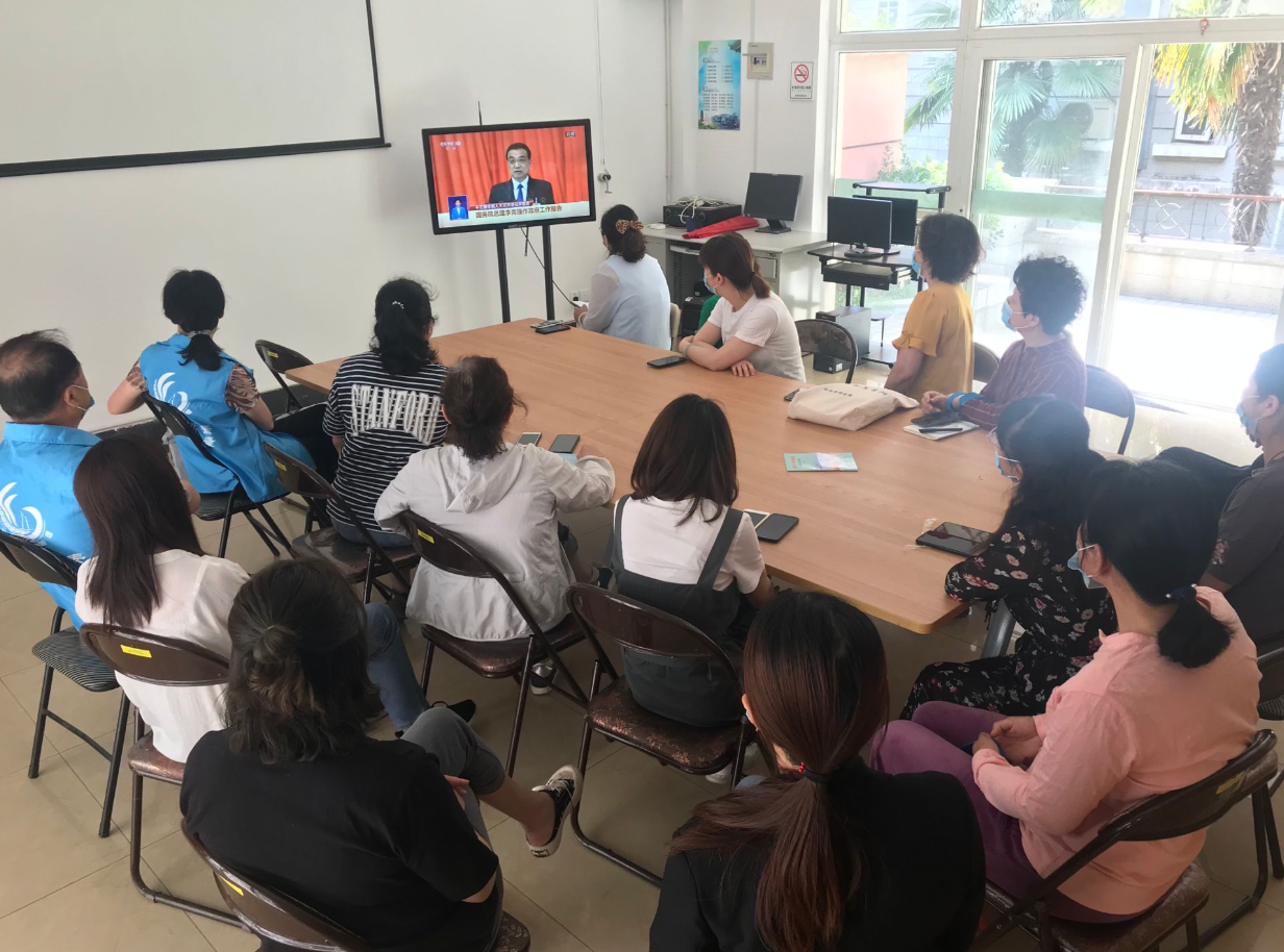 5月22日,十三届全国人大三次会议、全国政协十三届三次会议正式开幕,上午九点,怡康花园社区组织收看了全国两会开幕式,重点收听了李克强总理在大会上作的政府工作报告。
