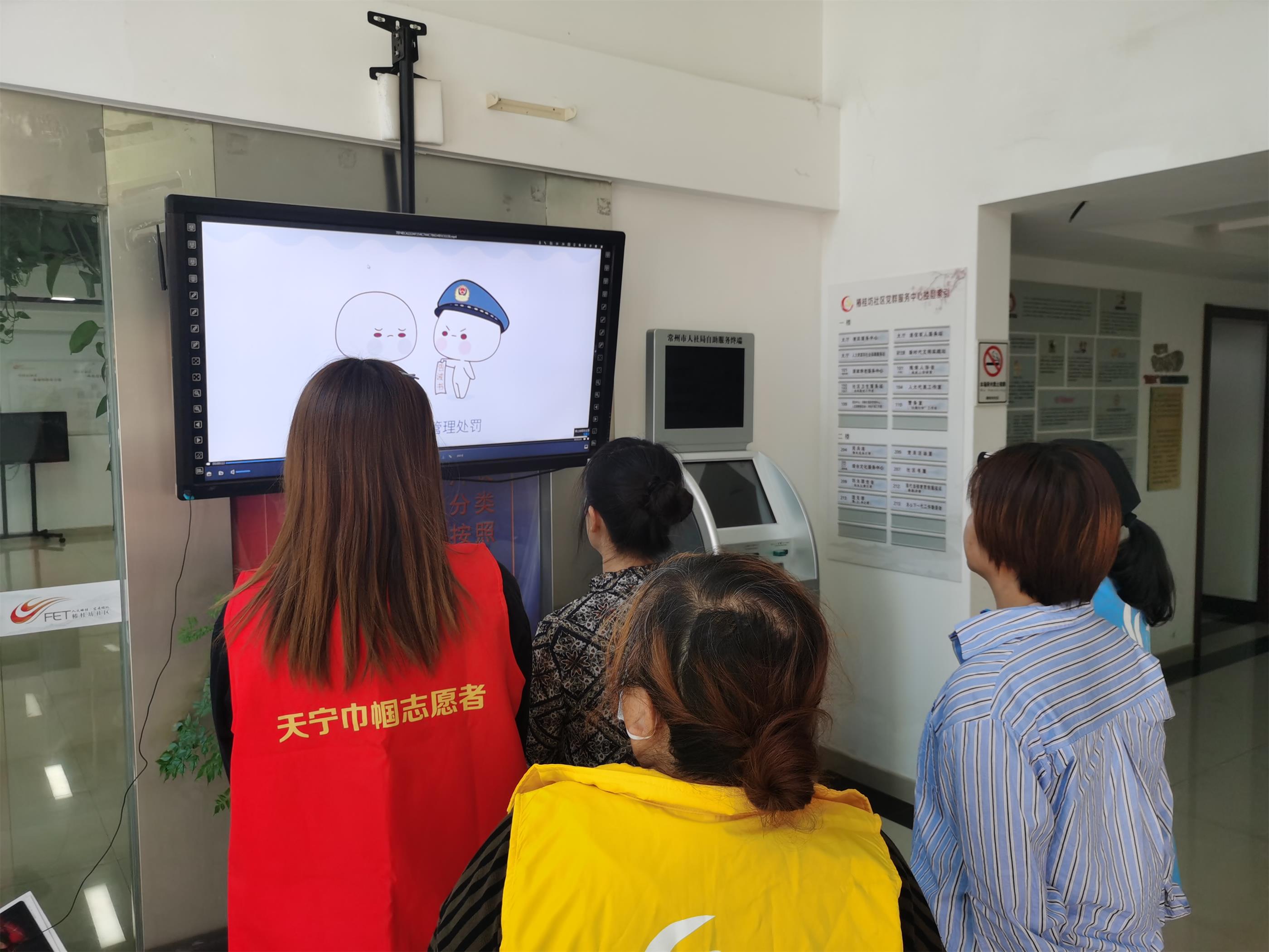 近日,椿桂坊社区妇联组织开展“向‘家暴’说不 巾帼志愿者在行动”普法宣传活动。为有针对性地组织开展反家暴主题宣传活动,社区居民在新时代文明实践站电子宣传屏前,在巾帼志愿者的陪同下观看《反对家庭暴力》宣传小视频,巾帼志愿者在向居民发放反家暴普法宣传手册的同时,详细讲解怎么预防和制止家庭暴力,鼓励居民用法律武器保护好自身合法权益,促进家庭和谐和社会稳定。