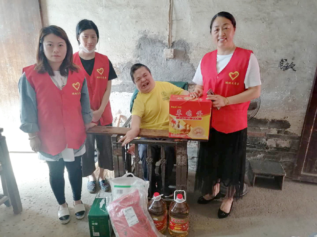 考虑到疫情期间不宜聚集,活动现场,志愿者安排残疾人家属有序领取米、油、鸡蛋等慰问品,同时,社区工作人员为行动不便的残疾人提供上门服务,为他们送上慰问品和祝福,了解生活近况,询问是否有困难。