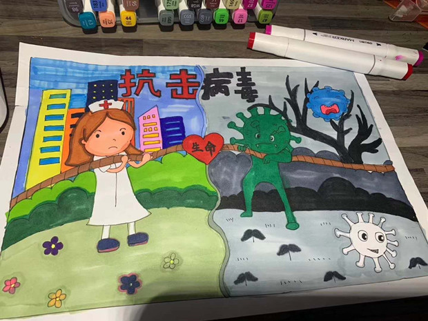 自新冠肺炎疫情爆发以来,全国人民齐心协力,团结协作共同抗疫,虽然居民们行动受限,但是每个人都可以通过网络密切关注着疫情的发展,收获着感动与温暖。活动中,辖区未成年人纷纷拿起画笔,紧紧围绕抗击病毒,赞美一线工作者这一主题,创意新奇,构思巧妙的绘出一幅幅作品。截止到6月1日,社区微信群中共收到辖区未成年人绘画作品15份。