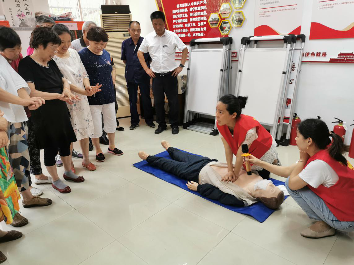 抢救生命的黄金时间大约是4-6分钟,现场及时地开展有效的抢救非常的重要。心肺复苏,是我们每个人都要掌握的重要急救知识。2020年6月4日,兰陵街道浦南社区特邀天宁区红十字会志愿者来社区为居民们开展急救培训,让社区居民学习心肺复苏、气道异物梗阻急救的理论知识以及实际手法的操作。首先,红十字会的志愿者深入浅出地讲解了社区常见的现场应急救护知识,重点讲授了现场救护技能。现场,社区居民们学习兴趣高涨,志愿者授课实际操作手法时,不少社区居民都跃跃欲试,伸出手来学习老师的动作。