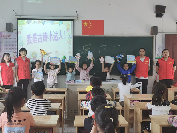 活动现场,所有的老师、同学们的脸上都洋溢着幸福的微笑,整个现场就像一片欢乐的海洋。一年级学生举办了“古诗小达人”的活动,同学们个个摩拳擦掌,精心准备,现场气氛热烈,参赛选手个个精神饱满,声情并茂,他们俨然一个个小诗人,发挥出了较高的水平,涌现出了一批的“古诗小达人”。活动结束后,淹城社区志愿者为他们颁发证书和小礼品,并为他们送上节日的祝福,现场阵阵欢声笑语。