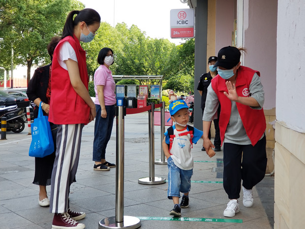 6月8日,在同济桥社区门口,悠悠早教的老师们、社区工作人员、小区保安各就各位,提前做好各项入学准备工作,严阵以待,为小小神兽们复学复课保驾护航。