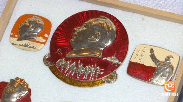 住在红梅街道,今年87岁的黄殿民老先生,就是一个红色收藏爱好者,他收藏的是毛主席像章,差不多有五六个木箱子的。一走进退休老兵黄殿民的家,映入眼帘的是满屋子的毛泽东像章,在这不足30平方的房间里,沙发上、茶几上整齐的摆放着藏品,一股浓郁的红色文化气息迎面而来,让人放佛穿越历史的云烟,看到当年的革命画卷。而说起这些像章的由来,黄殿民老师傅一下子打开了话匣子。黄殿民老先生说,当初他瞒着父母报名参军,在部队中,不断提升自己,被提升为干部。在部队,他有一个关系很好的战友,也正是因为这个战友,他才得以接触到毛主席像章。正是怀有对毛主席的崇拜,对党的忠诚,对部队的感激,使得黄殿民老师傅愿意每个月都拿出一部分钱购买毛主席像章,他说,这些像章,让他如获至宝。因为家人的支持,才使得黄殿民老师傅可以坚持自己的收藏爱好。为了更好的保存这些宝贝,他还特意叫女儿请来了木匠,耗费了两天时间,打造了几个特制的木箱子。黄殿民老师傅体内滚烫的红色基因,影响了一代又一代人。