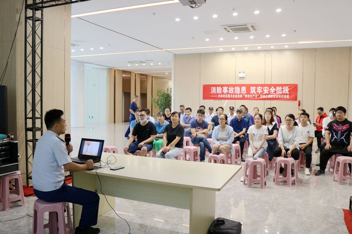 今年6月份是全国第19个“安全生产月”,为助力企业的安全生产工作,6月5日,兴东社区走进轨道交通产业园,为15家中小企业,开展了主题为“消除事故隐患,筑牢安全防线”的消防安全知识培训及演练活动。