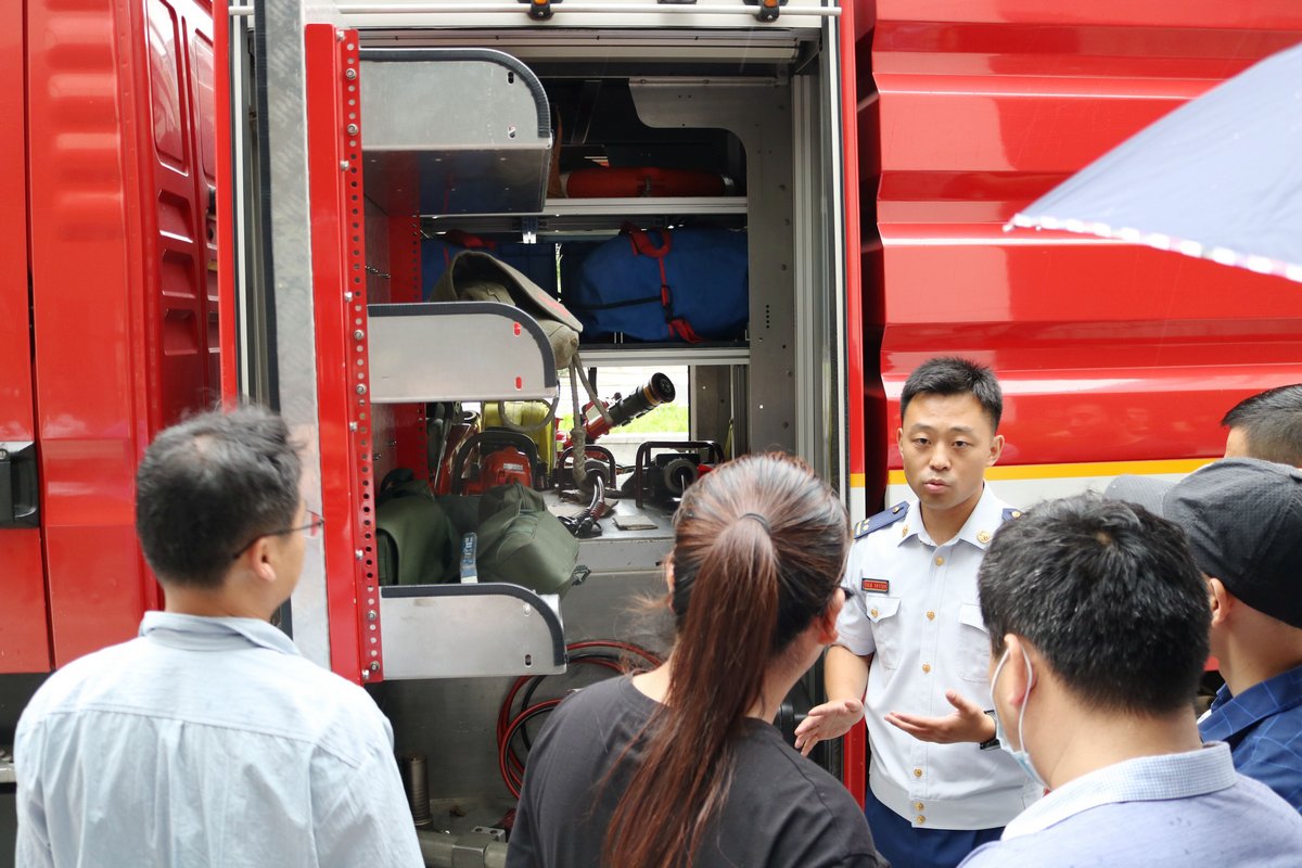 培训现场,经开区消防大队韦警官从普及防火知识的角度出发,通过讲述典型火灾案例,将防火、灭火、逃生、自救四个方面的知识进行了深入浅出地讲解,重点对企业火灾的预防措施、火灾初期阶段的扑救方法以及起火后的疏散逃生等内容进行了详细介绍,并对灭火器的使用方法进行了实际操作演示。经开区消防大队还专门开来了一部专业消防车,供企业职工参观学习,韦警官一一介绍了消防水泵、消防隔热服、安全头盔、破拆工具等消防器材用途和使用方法,另大家大开眼界。