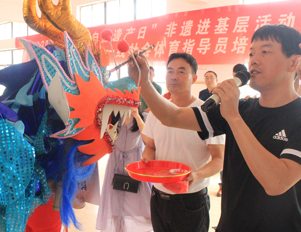 6月6日上午,“非遗课堂”社区教育特色项目工作室成员参加了金坛区体育指导员协会举办的“非遗进基层”活动暨金坛龙狮项目教练员、一线社会体育指导员培训班开班仪式。金坛区文体广电和旅游局文化艺术科科长戎华、群体科科长贾志辉、区民政局社会管理科李杰、区体育类非遗保护中心主任于跃进、副主任陈云东出席了活动。