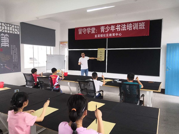 直溪镇社区教育中心开展“留守学堂:青少年书法培训”公益活动