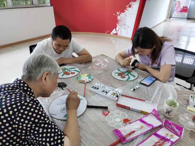 红梅社区文体协会的志愿者精心准备好空白扇子、颜料和画笔,志愿者老师首先向大家介绍了中国扇的文化史。扇与“善”谐音,实属同源,端午送扇的传统习俗,旨在倡导我们:手持折扇,内心向善,处处行善。讲理想信念,要大力弘扬中华民族优秀传统文化。