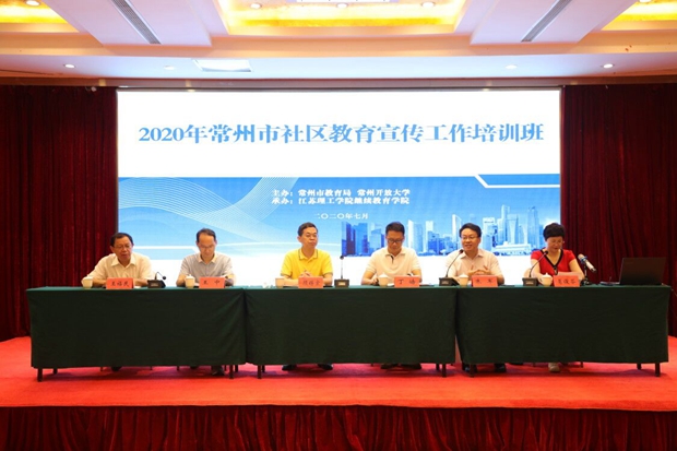 7月14日,由常州市教育局、常州开放大学主办,由江苏理工学院继续教育学院承办的2020年常州市社区教育宣传工作培训班在江苏理工学院举办。全市来自各辖市(区)的百位社区教育通讯员参加了本次培训。常州市教育局终身教育处处长丁皓,江苏理工学院继续教育处处长、继续教育学院院长朱军,江苏理工学院继续教育处副处长、继续教育学院副院长王福民,常州开放大学校长顾锡宏、副校长王中等出席了本次活动。培训由常州开放大学社区教育学院院长葛俊芬主持。
