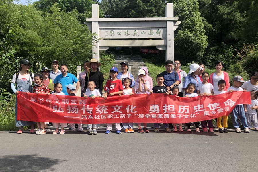 郑陆镇查家湾是常州市首批7个美丽乡村示范区(点)之一,除了旖旎的自然山水风光,它还有着悠久的历史文化底蕴。体现在以道德文化为核心的舜文化、以卧龙伏虎墩为代表的新石器时代文化遗址和因季子晚年隐居于此而发扬的季子文化。社区邀请了查家湾当地志愿者带领职工家庭们一起爬舜山,览舜风驿、季子轩、舜过遗风等历史文化景观,并融入了传说故事的讲解。而身处舜过山脚下的查家人,代代熟读季子文章,注重用季子诚信的典故教育子孙后代,给参加本次活动的每个家庭带来了深深的家庭教育启示。