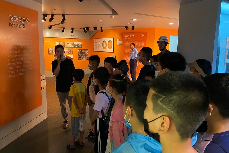为丰富青少年暑期生活,增强社区青少年的国防观念和安全意识。2020年8月10日下午,河苑社区组织辖区内40余名青少年前往常州民防科普教育馆参观。