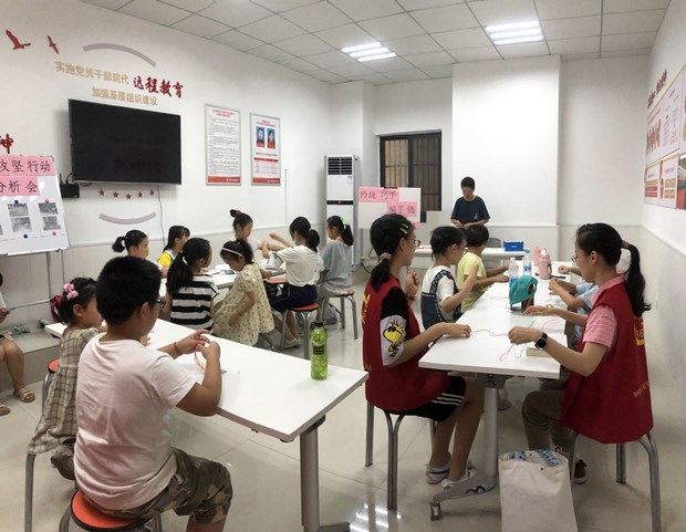 本期课程可以让青少年们学会平结的基本编法,并独立完成一条手链。通过本次活动让大家可以感受中国传统文化,感知民间工艺的魅力,从而形成热爱中国传统工艺,热爱生活的美好情感,同时调动了青少年们的动手积极性,丰富了他们的暑期生活。(花西社区居民学校 钟雨岑)