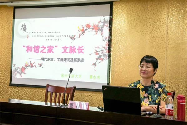 在讲座中,董老师通过一个个典型鲜明的故事讲述了明代,天宁区青龙街道有个村子叫陆家塘,那时叫丰西乡,村里有个陆姓的家族的事迹:七代出了十一个进士。这个家族爱好读书,家庭和睦,女性懂得教育孩子,延续家族美德传统;男性知道报效国家,品德高尚。其中第三代探花陆简,一生努力,不断升官,最后成为皇帝的讲师,太子的老师。著有《龙皋文集》十九卷。祖孙两还进入了常州先贤祠,被常州府郡守春秋祭奠,值得大家学习。