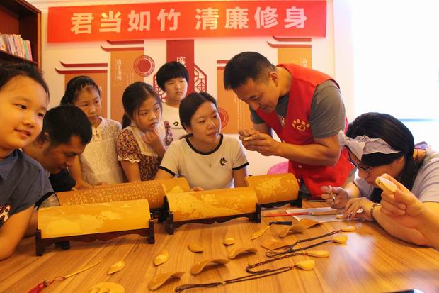 君当如竹,清廉修身。党员更应当如竹,廉洁齐家。西林村通过竹刻艺术创新形式开展廉政教育,努力宣传清正廉洁的工作作风,使党员进一步增强廉洁意识,坚定理想信念,让“清正廉洁作表率”落实在行动中。(西林街道社区教育中心 沈佳)