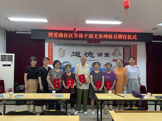 近日,博爱路社区的六位军休干部被社区正式光荣的聘请为“军休干部义务网格员”。六位军休干部郑重的接过聘书,现场纷纷表示将继续秉承“退伍不退色”的军人本色,为居住在本社区的军属干部们竭力提供倾情帮助,传递信息,收集社情民意,传承助人为乐的优良传统。