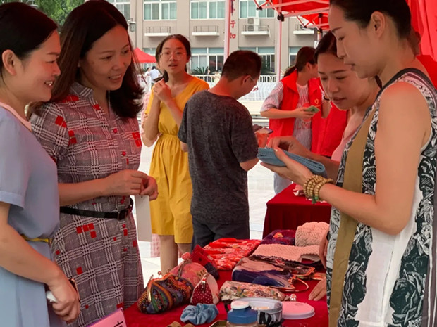 活动展示了我校社区教育师生制作的手工作品约五十余件,其中不乏精品和充满奇思妙想的好作品,充分展现了我校社区学员的风采,吸引了广大居民驻足欣赏。教师志愿者们耐心地向居民介绍了作品的特色和寓意。几乎每位居民都会停留咨询,足以看出这些工艺品的魅力。同时,继续教育学院还提供了手工作品现场指导制作服务,居民们按照步骤,一针一线地仔细缝制,短短一会儿,居民们在志愿者的协助下,一个个漂亮精致的发圈纷纷出炉。居民们纷纷留下联系方式,嘱咐志愿者们下一期巧手"绣"社区课程开课时,一定要第一时间通知他们报名学习。