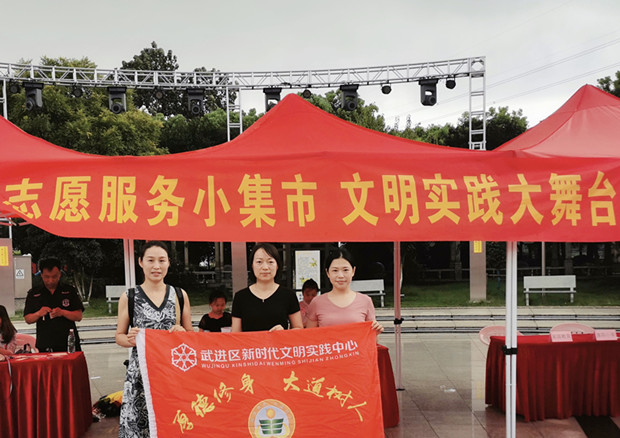 7月29日晚上,武进开放大学教师志愿服务队作为武进区教育系统新时代文明实践服务队代表队之一,参加了在洛阳镇岑村村举办的新时代文明实践服务大集市活动。