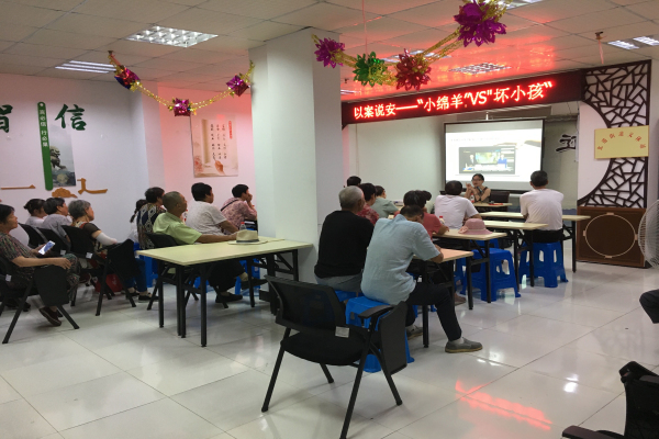 9月10日下午,北港街道水杉路社区居民学校的家长齐聚一堂,共同聆听了主题为“以案说安——小绵羊VS坏小孩”的成长教育课程。
