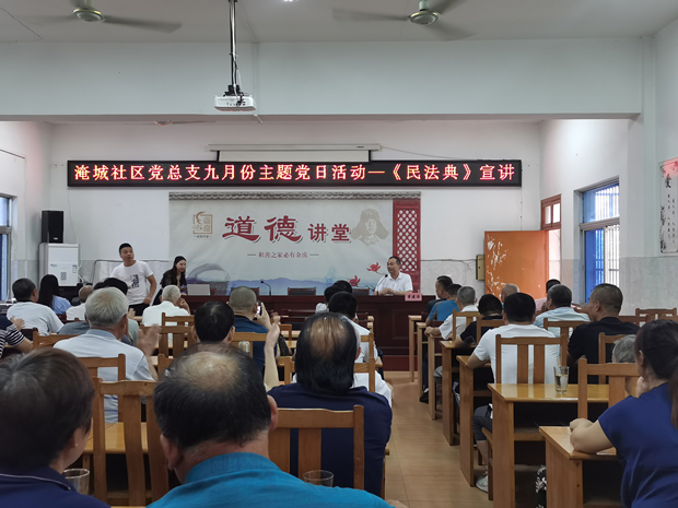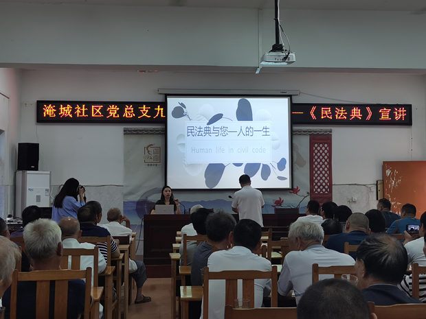 为了加深党员、群众对《民法典》的认识,让《民法典》走到群众身边、走进党员心里,9月11日下午,淹城社区党总支召开九月份主题党日活动,特邀江苏品川律师事务所的承颖律师开展《民法典》宣讲。