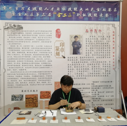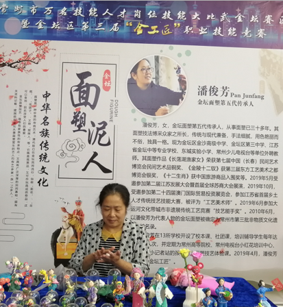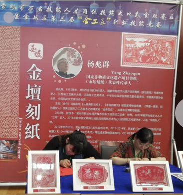 外聘非遗大师们在金坛区第三届“金工匠”职工技能大赛上展示精湛技艺,他们在继承了祖辈们传统技法同时加现代技艺,注入工匠精神的灵魂,向世人传递非遗的魅力。金坛刻纸被列为国家非物质文化遗产项目、金坛面塑被确定为常州市第三批非遗物质文化遗产保护名录,中国篆刻被入选为人类非人类物质文化遗产代表名录。工作室外聘非遗大师面塑第五代传承人潘俊芳、刻纸大师杨兆群工作室传承人、篆刻大师李国华在竞赛开幕式现场用博采众家之长技法,将一件件栩栩如生的作品展示在所有人的眼前。