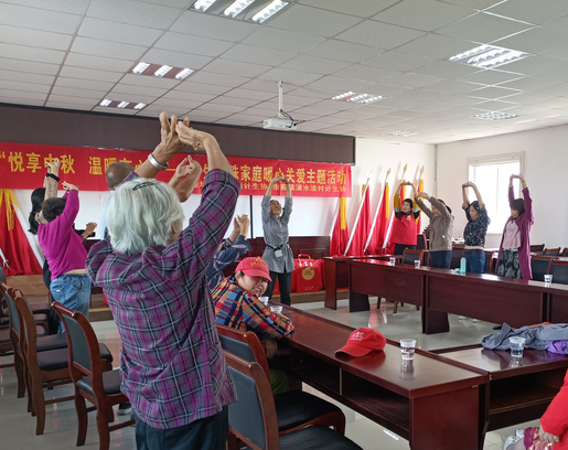 随后镇计生协马秋香秘书长为大家进行健康保健小讲座,并通过简易教学养身操——八段锦与各计生特殊家庭互动,大家默契配合,喜笑颜开。互动结束,志愿者给他们送上早准备好的节日礼物。村医务室的张丽萍医师还为计生特殊家庭做测量血压等常规检查。