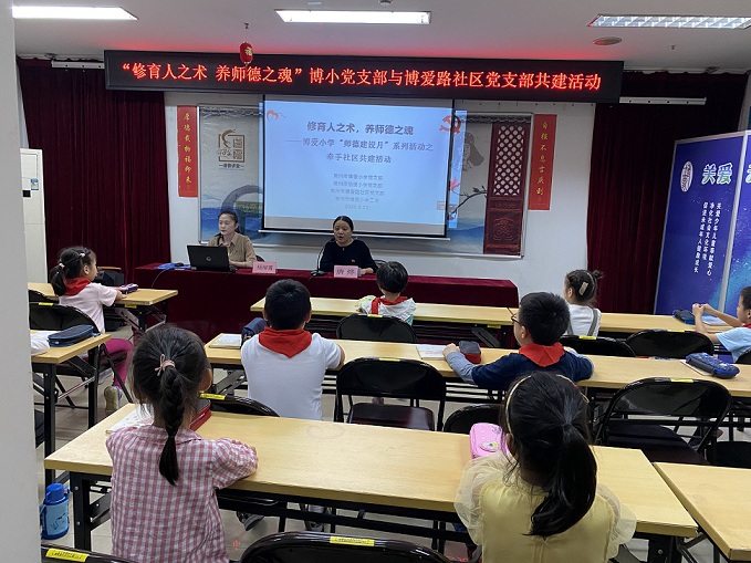 为进一步加强教师职业道德建设工作,让为人师表的作用得到进一步发挥,使每一个社区学校孩子都能够在老师的精心培育下健康成长,9月27日,支部牵手:博爱路社区党总支与博爱教育集团联合党总支开展“修育人之术,养师德之魂”语文写作课进社区活动。