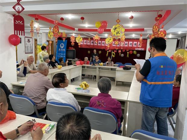 联欢会以观看中华礼仪动漫、传花猜谜、唱红歌、贴国旗等欢快形式互动进行,与会代表边品尝着社工亲手制作的馄饨、月饼,边畅叙着抗疫胜利的喜悦和祖国七十一年发展的美好愿景。