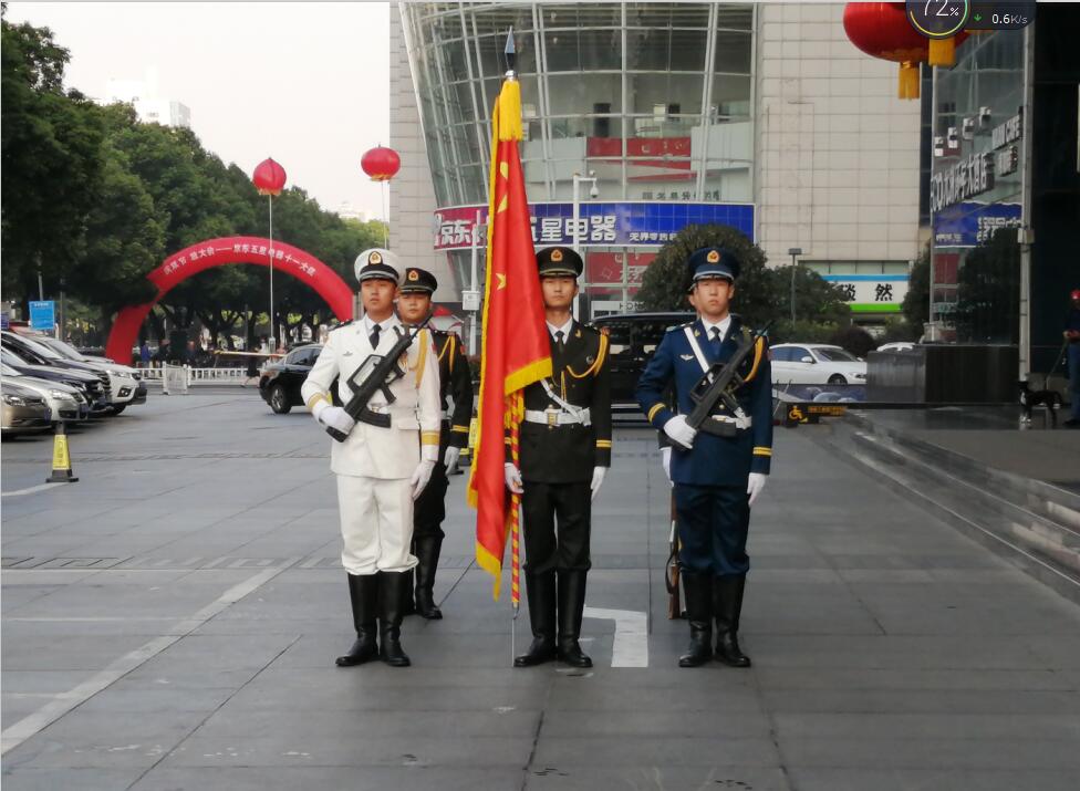 此次活动邀请了参加过70周年阅兵典礼的退役军人进行升旗仪式。庄严的国歌声中,旗手奋力挥臂将国旗展开,鲜艳的五星红旗冉冉升起,全体成员庄严肃穆,面向国旗行注目礼,同升国旗,同唱国歌,向着国旗唱出热爱之情,展现了深切浓厚的爱国热忱和昂扬向上的精神风貌。升旗仪式结束后,由军地协培训中心的张宁杰同志为大家宣讲国旗文化。